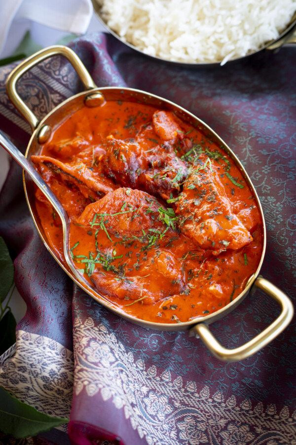 Mainly a dish from the Royal city of India, Patiala. Aubergine (Eggplant), potato and transcalent onion tossed into a tomato-based curry to take this humble veggie curry to another level.