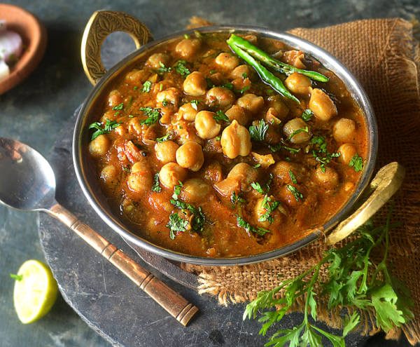 Chhole (Chickpeas) is a renowned dish from Northern India, Punjab. This naturally healthy, Vegan curry is made with finely chopped onions, tomatoes, and a handful of spices, resulting in a medium spiced and tangy flavor. Enjoy this authentic delicacy that’s packed with delightful taste and culture.