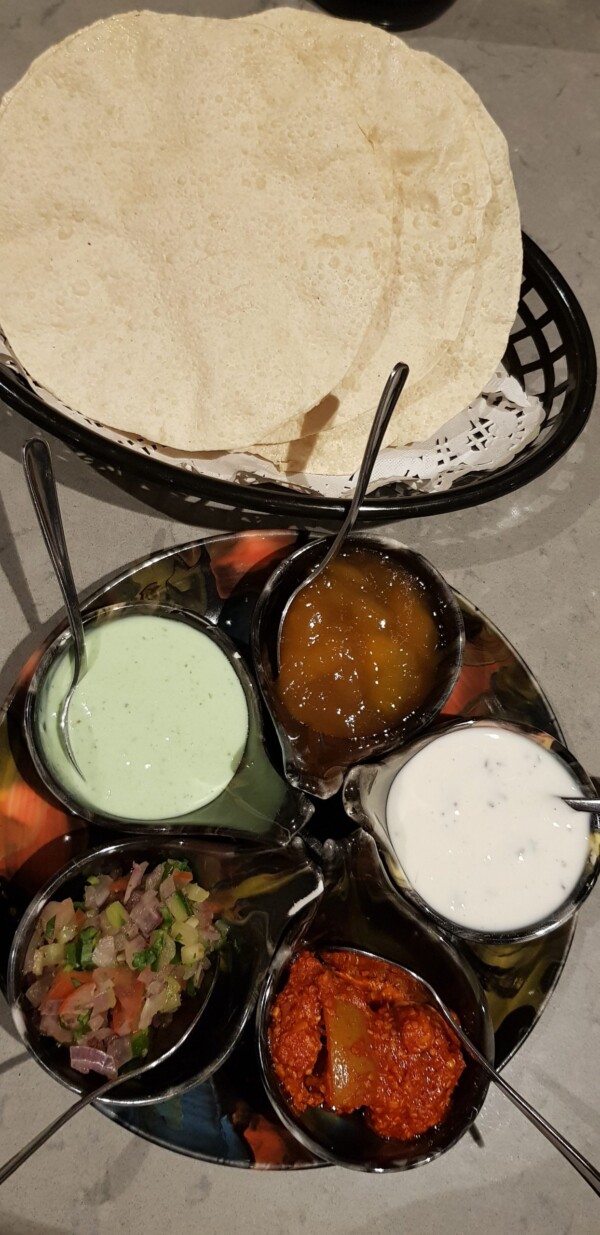 Freshly chopped onions mixed through with spicy mint chutney and chopped green chillies.