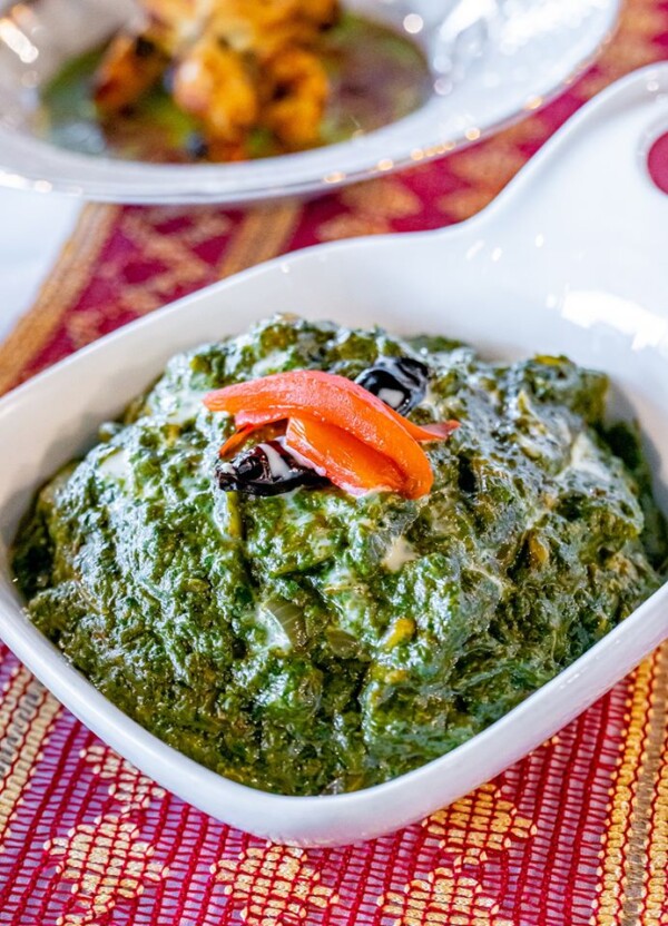 Ghosht; an Urdu word for meat. Blended to perfection the Mughlai style, with fresh green spices from the hilltops of Kashmir and puree of green leafy spinach, with your choice of Beef, Chicken or Lamb.