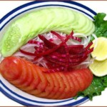 Chopped cucumber, tomato, carrot and onions freshly chopped with seasonal green leaves; finished with a touch of lemon juice and Spiced Indian Masala.