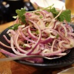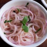 Freshly chopped onions mixed through with spicy mint chutney and chopped green chillies.
