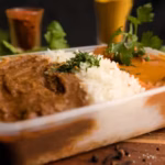 - Option 1: Butter Chicken + Rogan Josh with plain steamed rice, all packed neatly in a container.